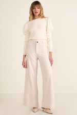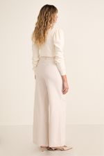 Pantalón recto en sastrero rayado, cartera con boton metalico y cintura con presillas. La modelo está usando talle 42 Composción: 97% Poliéster | 3% Elastano