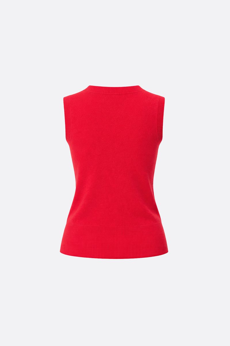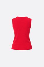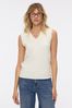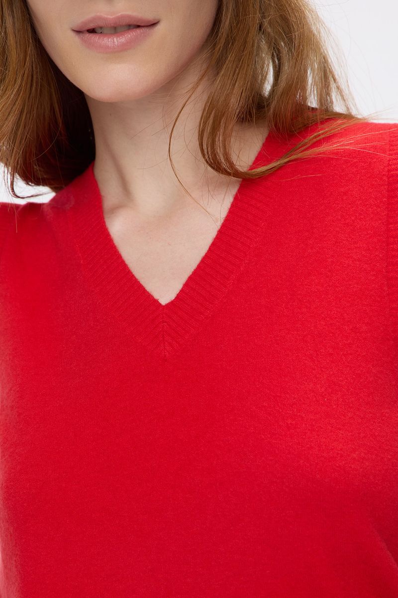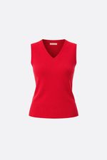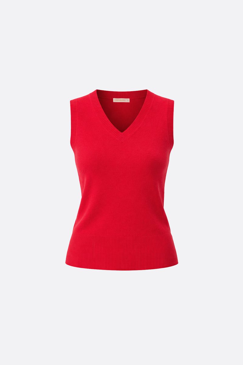 Chaleco tejido en punto jersey, con cuello en forma de v y tejido de rib en econte y sisas. Contiene Lana en su composición que ofrece un tacto suave y una sensación de abrigo superior. La modelo está usando talle 42. Composición: 28% Poliéster | 28% Acrílico | 17% Poliamida | 10% Rayón viscosa | 12% Modal | 5% Lana