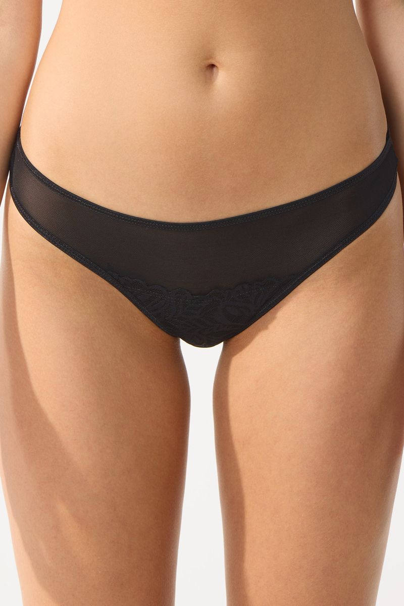 Colaless en puntilla combinada con microtul, lleva refuerzo de algodón en entrepiernas. La modelo está usando talle M. Composición: Tela 1:90% Poliamida | 10% Elastano || Tela 2: 100% Algodón