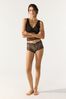 Culotte en encaje con lurex con refuerzo de algodón en entrepiernas. La modelo está usando talle M. Composicion: Tela 1:90% Poliamida | 10% Elastano || Tela 2: 100% Algodón