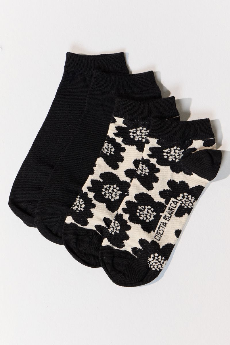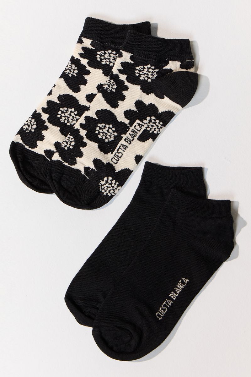 Pack x2 pares de medias con diseño de print exclusivo y liso en combinación. Composición: 80% Algodón | 17% Poliamida | 3% Elastano