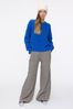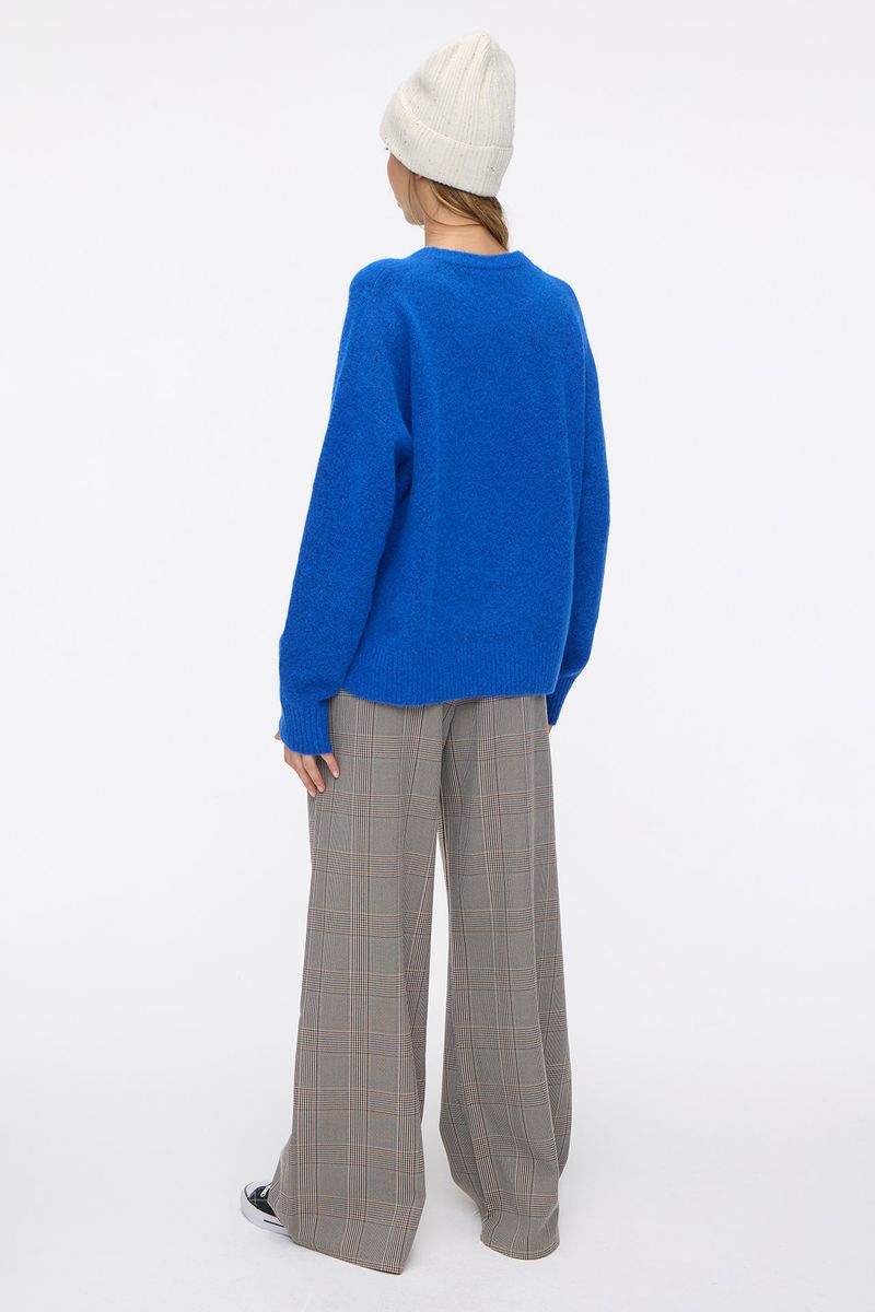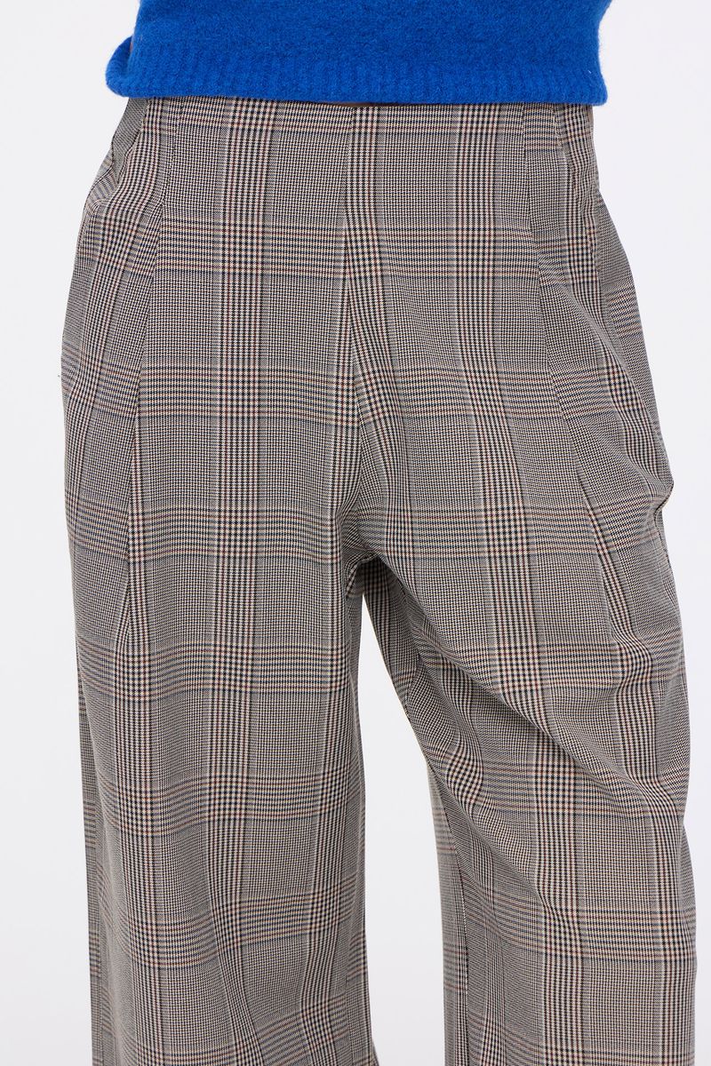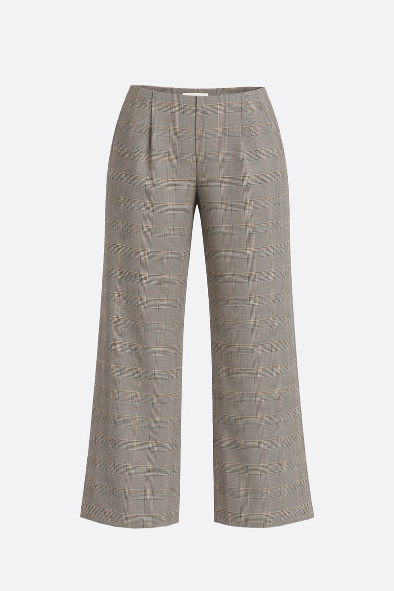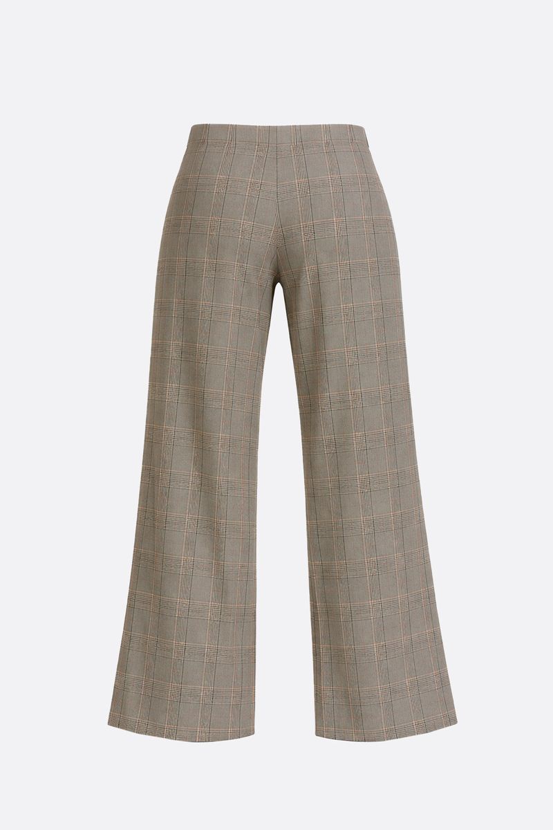 Pantalón wide en tela con pinzas en delantero y cierre invisible en lateral. Confeccionado en una tela sastrera con motivo Príncipe de Gales. La modelo está usando talle 40. Composición: 90% Poliéster | 7% Rayón Viscosa | 3% Elastano