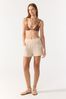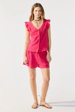 Short liso en tela de algodón, cintura elastizada Y bolsillos en delantero. La modelo está usando talle 42. Composición: 100% Algodón