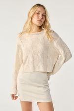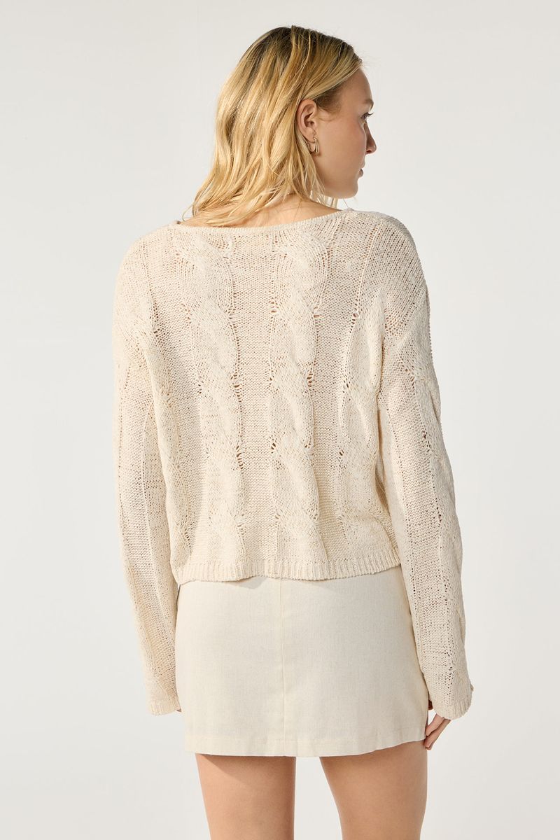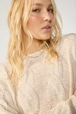 Sweater cuello redondo con diseño de trenzas. La modelo está usando talle 42. Composición: 65% Acrílico | 35% Poliamida