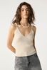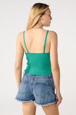Top tejido con escote en v y breteles. La modelo está usando talle 42. Composición: 80% Rayón viscosa | 20% Poliamida